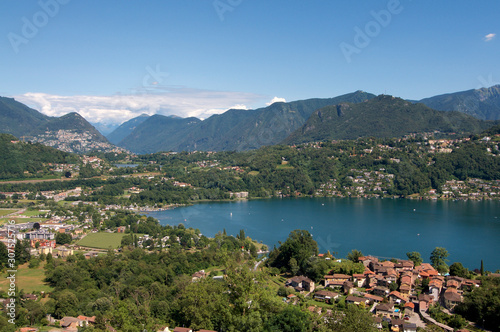 © Marlon, Fototapeta premium View over gulf of Agno on the lugano lake