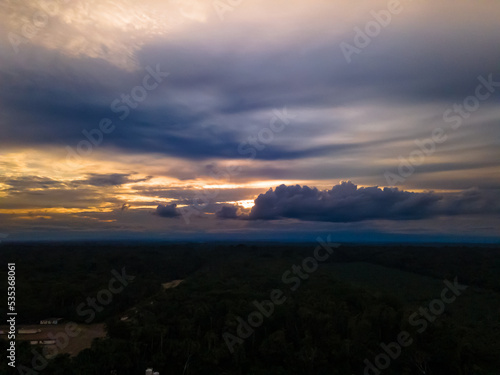 Fototapeta premium View over sunset over Amazon river with rainforest in Brazil.