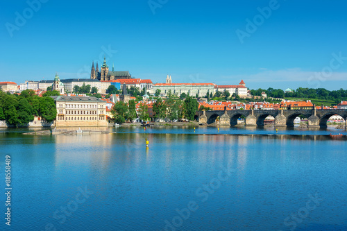 Obraz premium View over the RiverVltava with Charles Bridge and the Cathedral