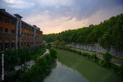 Fototapeta premium View over Tiber River with Fatebenefratelli Hospital on Tiber Island, Rome,...