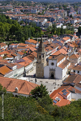 Obraz premium View over Tomar and Saint John the Baptist Church, Tomar, Santarem district,...