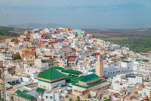 Naklejka premium View overlooking the town. Wooden roofs. Morocco