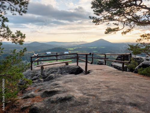 Obraz premium View platform above autumn valley. Hiking through beautiful Czech Switzerland