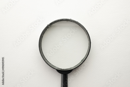 © Pakorn, Fototapeta premium View through a magnifying glass on white background.