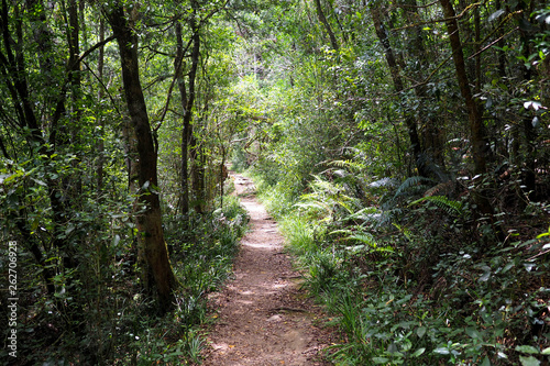 Fototapeta premium View through down a path in a green forest