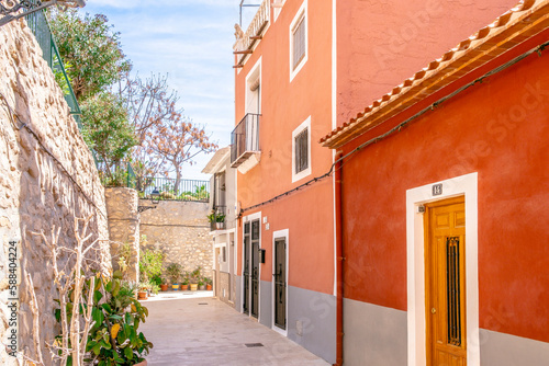 Fototapeta premium View to beautiful Villajoyosa street with multi-colored houses. Villajoyosa -...
