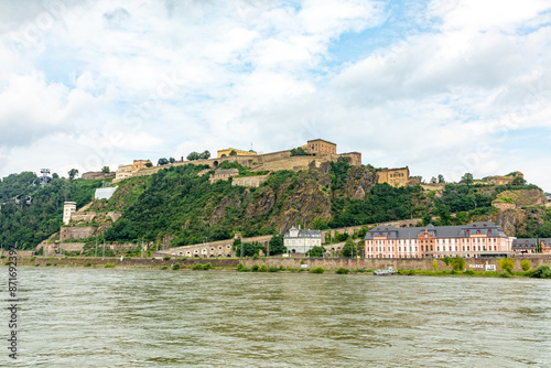Fototapeta premium view to Feste Ehrenbreitstein in Koblenz at river Rhine