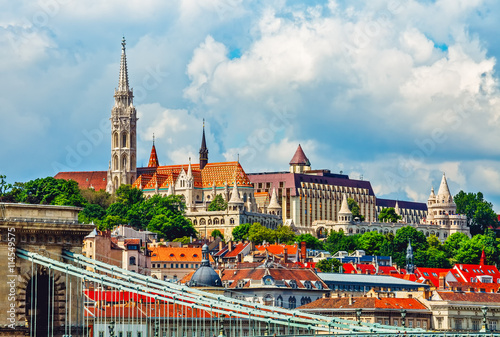 © Yasonya, Obraz premium View to fishermans bastion in budapest city