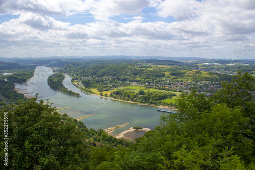 Fototapeta premium view to river Rhine from the famous mountain Drachenfels in Koenigswinter