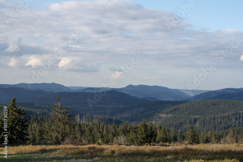 Fototapeta premium View to the mountains of the german area called Rothaargebirge