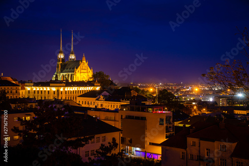 Naklejka premium View to the red roofs of Brno city with Cathedral of Saints Peter and Paul. Morawia, Czech Republic