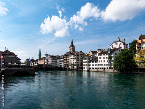 Fototapeta premium View to the river and city of Zurich