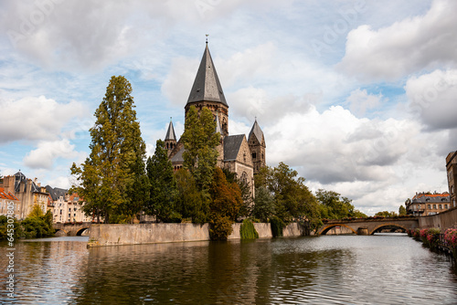 © Westlight, Fototapeta premium View to the Temple Neuf at the Moselle. Metz, Lorraine, city in France. Historical architecture, Protestant Reformed Church, built in 1904.