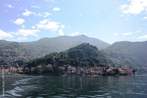 © ClaraNila, Fototapeta premium View towards Varenna at the Lake Como under blue sky in Lombardy Italy