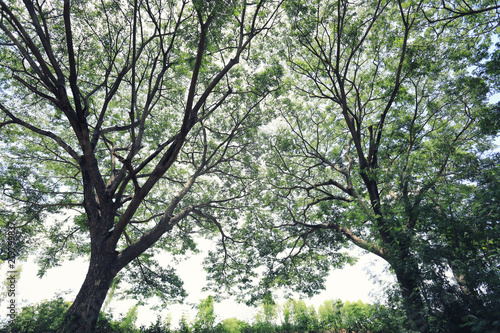 Obraz premium View under big tree in the garden.
