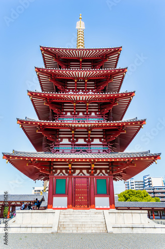 Obraz premium View with The Five Story Pagoda at Shitennoji Gojunoto temple in Osaka, Japan.