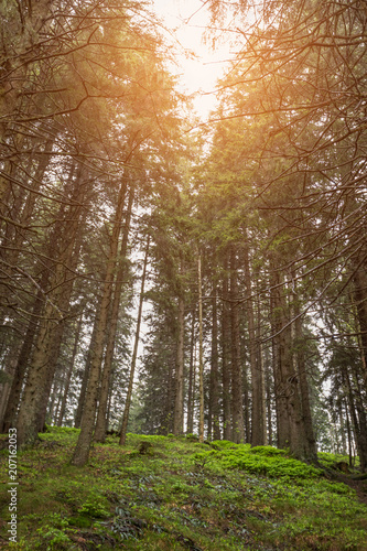 Fototapeta premium View with the pine forest in the mountains
