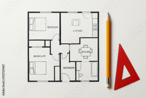 © Manji, Fototapeta premium Viewing Apartment Floor Plan Layout with Drawing Tools