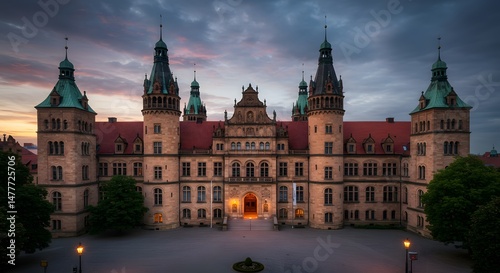© arazka, Fototapeta premium Viewing Historical Building at Dusk with Dramatic Sky