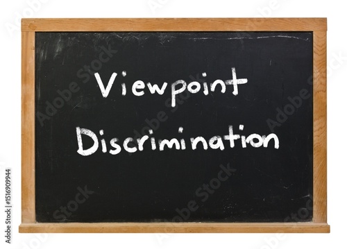 Obraz premium Viewpoint discrimination written in white chalk on a black chalkboard with a...