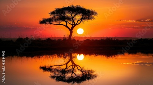 Fototapeta premium Views of African trees with sunset, silhouette trees with sunset