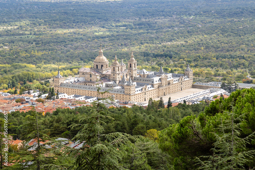 Naklejka premium Views of the El Escorial Monastery from a viewpoint on Mount Abantos