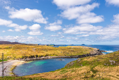 Obraz premium views of the gearrannan blackhouse village, and the area surrounding it, Isle of Lewis, Scotland
