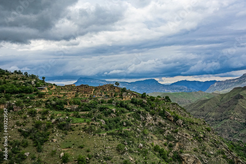 Fototapeta premium Views of the mountains of Dagestan near the village of Gamsutl. Russia June 2021