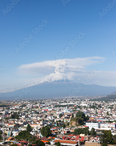 © Leckerstudio, Obraz premium Views of the Popocatepetl volcano from the city of Cholula in the Puebla region of Mexico.