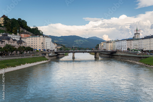 Obraz premium Views of the river Salzach from the Marko-Feingold-Steg bridge, Salzburg,...