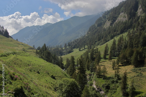 Fototapeta premium Views of the Varaita Valley, known as the "emerald valley" in the western...