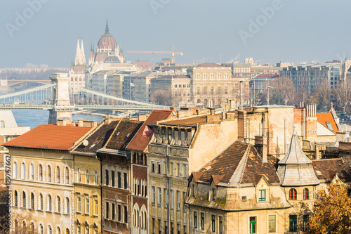 Fototapeta premium views to chain bridge and parlament, icons of budapest, hungary