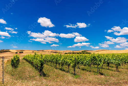 © Alessio Orrù, Obraz premium Vigneto con sfondo di cielo azzurro e nuvole, Italia