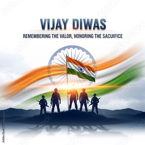 Naklejka premium Vijay diwas indian soldiers honoring sacrifice with flag and ashoka chakra