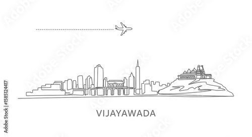 © godsfavoritearts, Fototapeta premium Vijayawada Skyline with India Plane in background.
