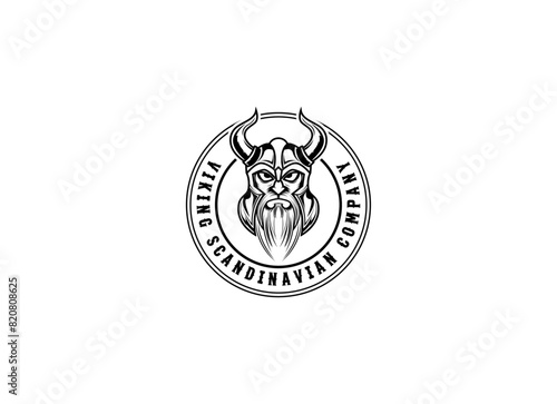 © AlvinStd., Fototapeta premium Viking head vector logo design. Vintage Retro Nordic Norse Viking Helmet