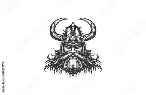 © Rezz, Fototapeta premium Viking logo vector icon illustration vintage style
