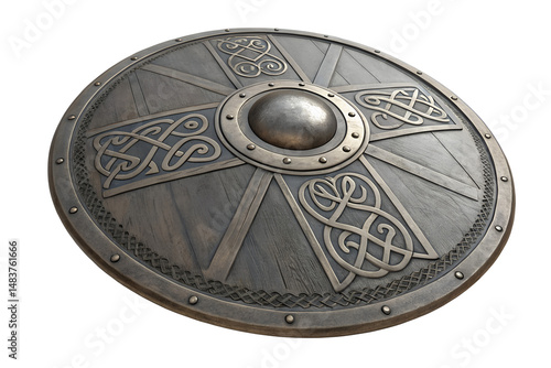 © Василь Тігай, Naklejka premium Viking Shield with Intricate Carvings