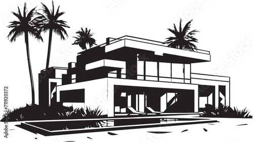 © BABBAN, Fototapeta premium Villa Vista Badge Panoramic View Logo Featuring Modern Villa