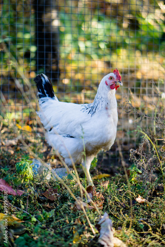 © Daria Minaeva, Fototapeta premium Village chicken in the backyard of country house