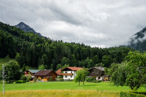 Obraz premium village houses in a mountain Alps landscape