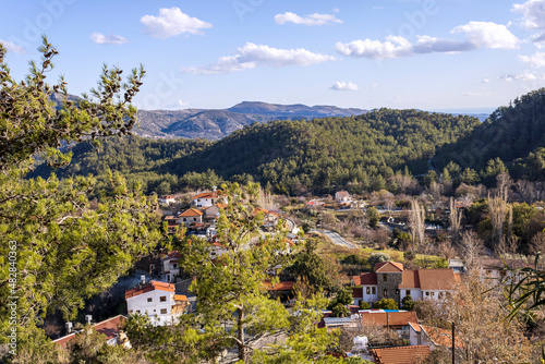© Olga, Fototapeta premium Village in hill valley, Troodos, Cyprus