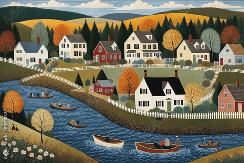 © valentina, Fototapeta premium village in the mountains content created with generative AI software.