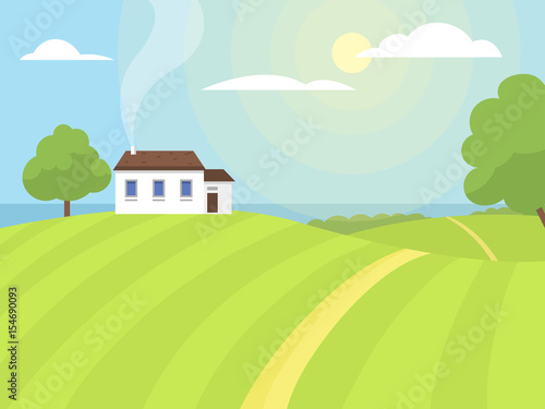 Fototapeta premium Village landscapes vector illustration farm house agriculture graphic countryside
