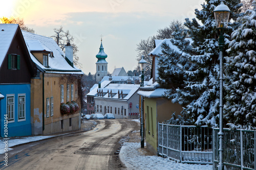 Fototapeta premium village of Grinzing in early morning light in Wintertime