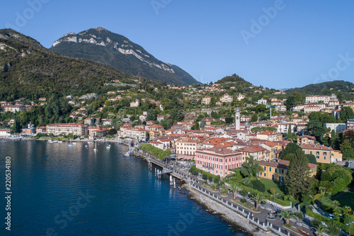 Fototapeta premium Village of Menaggio, lake of Como. Panoramic view from a drone