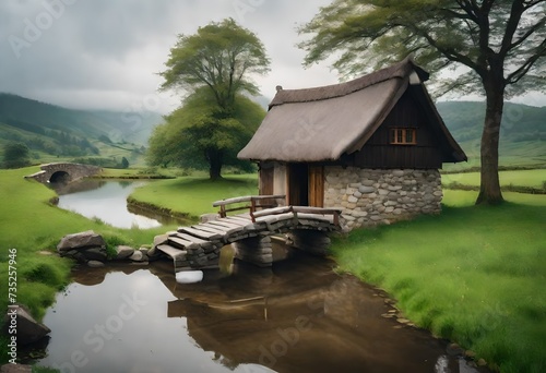 © Aqsa, Obraz premium village on the river