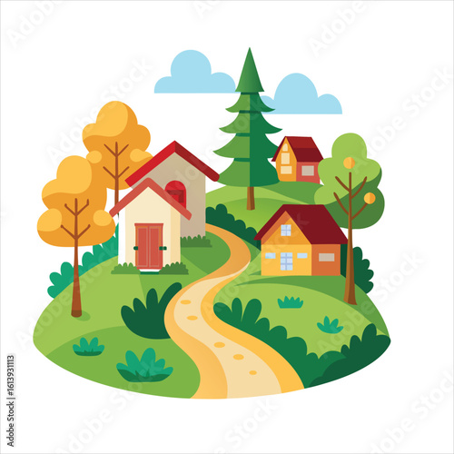© sastock, Fototapeta premium Village Path and Nature Vector Art