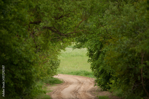 © Юрий Горид, Obraz premium village road leading through a green summer alley
