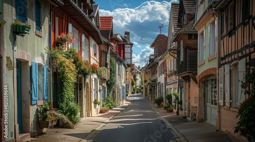Fototapeta premium village street, showing the houses lined up along the road generative ai